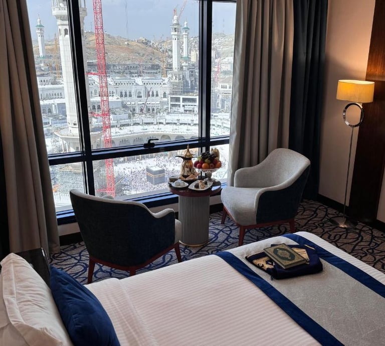 Découvrez notre chambre luxe, équipée de toutes les commodités modernes, pour un séjour inoubliable idéale pour les voyageurs en quête de confort après leur Omra.